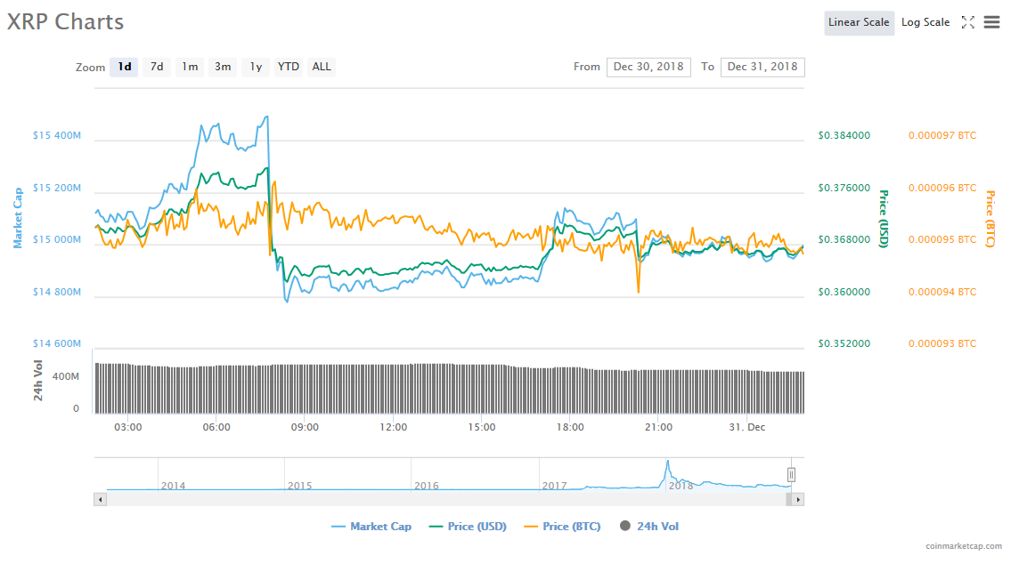 XRP’s price fell 0.75% to trade at $0.367467. As for the altcoin’s trading volume, it reached $528.47 million; whereas its market capitalization hit $14.99 billion.
