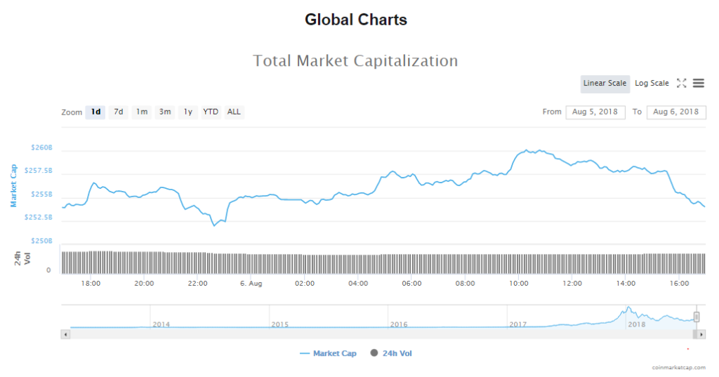 After the debacle of the cryptocurrency market’s value plunging this weekend, trading volume has been low in the market, with it currently being at $11.21 billion. Market cap also has not recovered, with its currently at $254.65 billion.