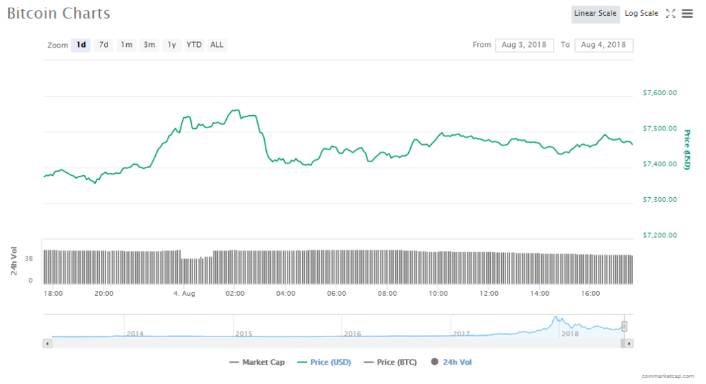 While BTC gained 1.09% to trade at $7472.66 per token. BTC’s volume in trade is $3.91 billion and its market value is $128.44 billion.