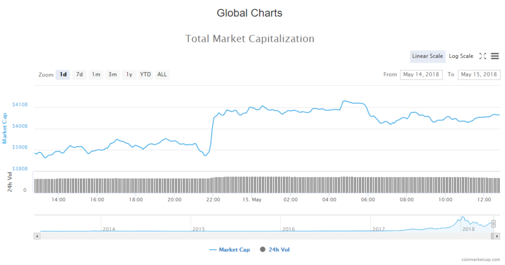 The trading volume went up slightly to $22.73 billion and market capitalization in the cryptocurrency market once again rose above the $400 billion mark to$405.54 billion.