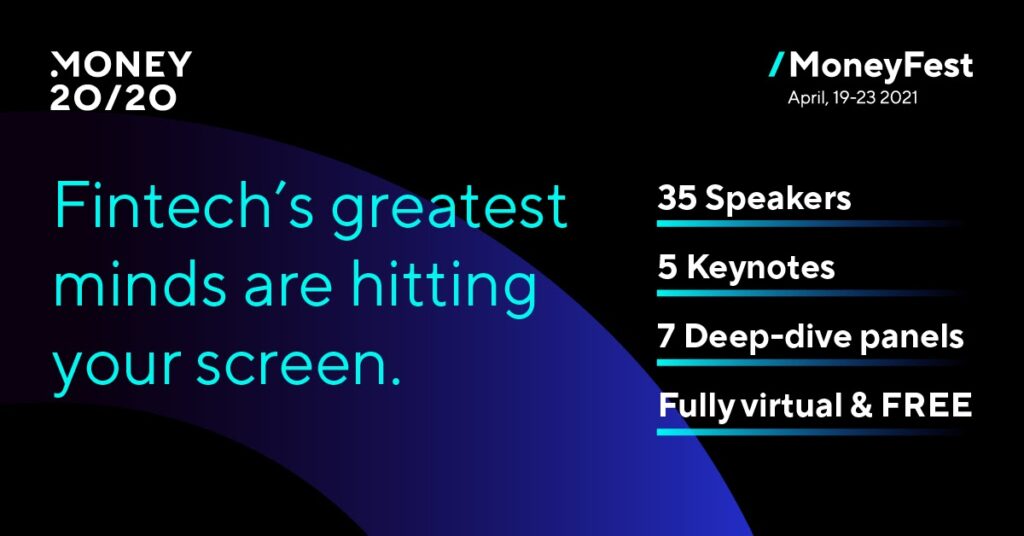 Money 20/20’s trendy fintech forum, MoneyFest, will be coming to your screens from April 19-23, bringing you face to face with the industry’s greatest minds while leaving you with valuable case studies and actionable insights on how to collaborate and scale more effectively. All content will be available live and on-demand, entirely free.