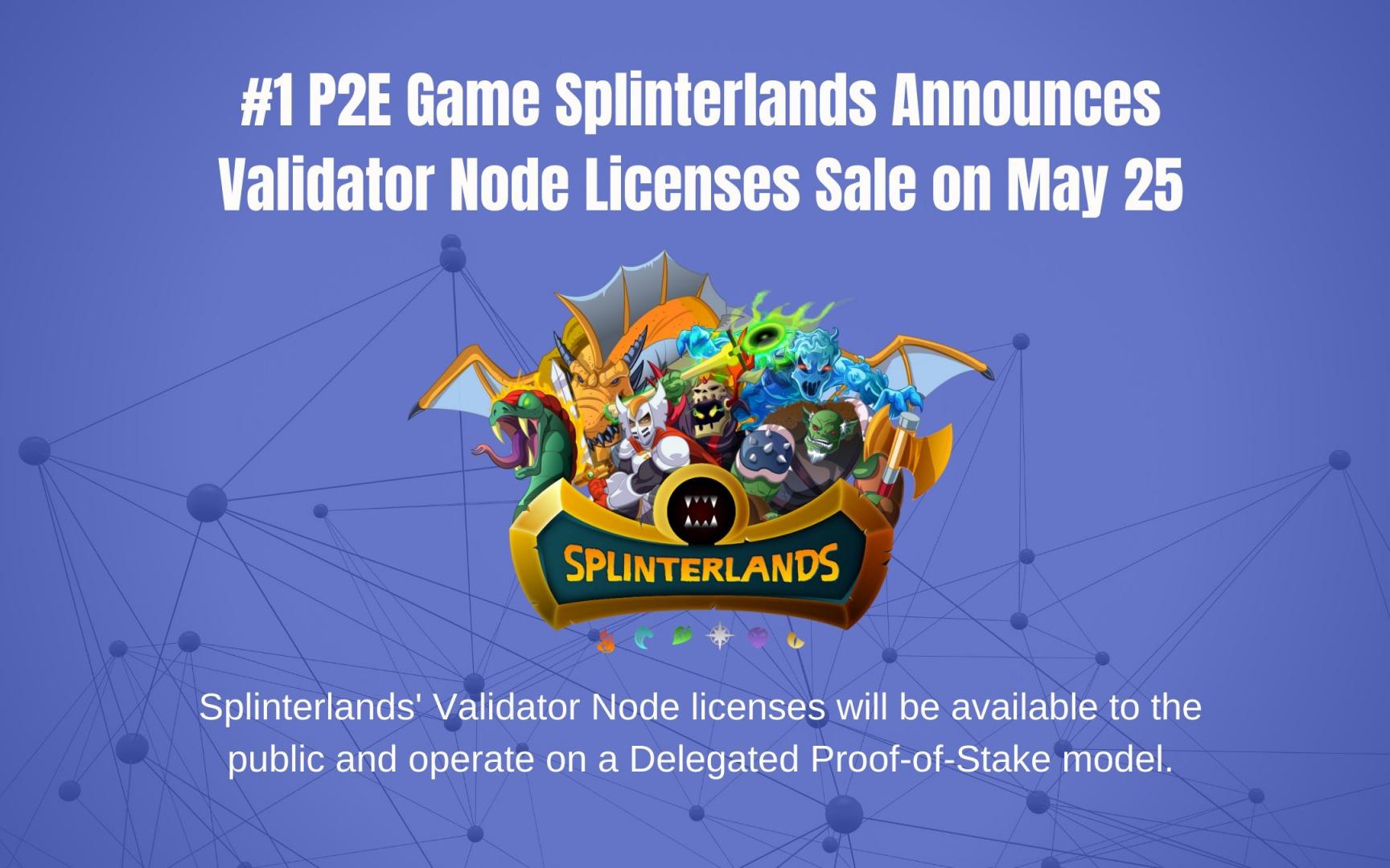 Splinterlands, the #1 play-to-earn game (P2E) on the blockchain, announces that their Validator Node licenses will go on sale on May 25, 2022. The Validator Node licenses will be available to the public and operate on a Delegated Proof-of-Stake model.