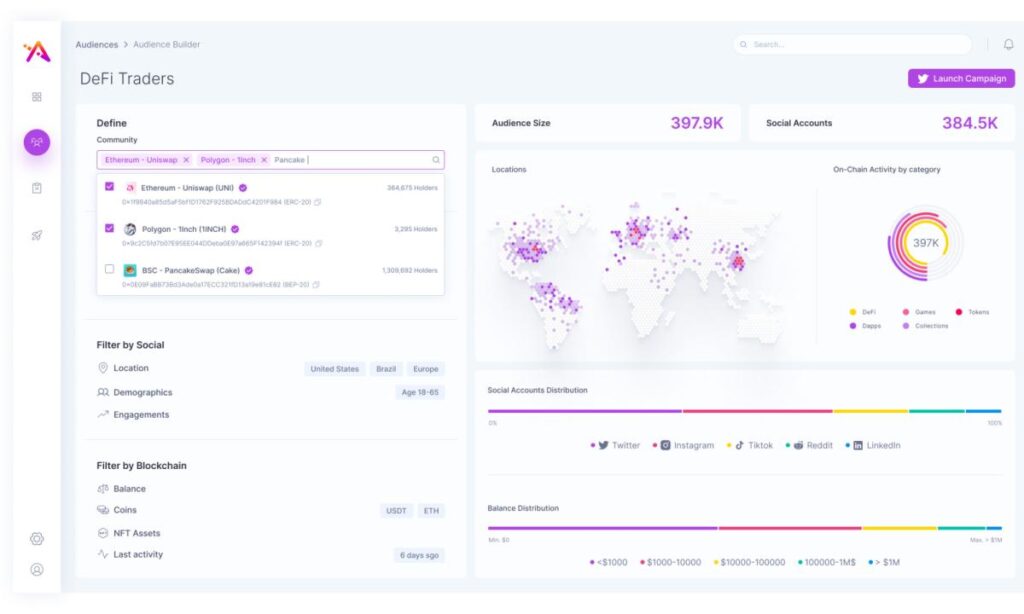 Addressable’s SaaS solution provides Web3 marketing teams with a powerful platform to launch campaigns and more effectively target new audiences by matching blockchain activity with social profiles. This precise targeting reduces cost-of-acquisition dramatically compared to the broad targeting of existing web2 tools. Leading Web3 companies like Polygon, Bancor, Immutable, and Kryptomon are already using Addressable’s technology to acquire new users in an era when traditional Web2 marketing campaigns are no longer effective.
