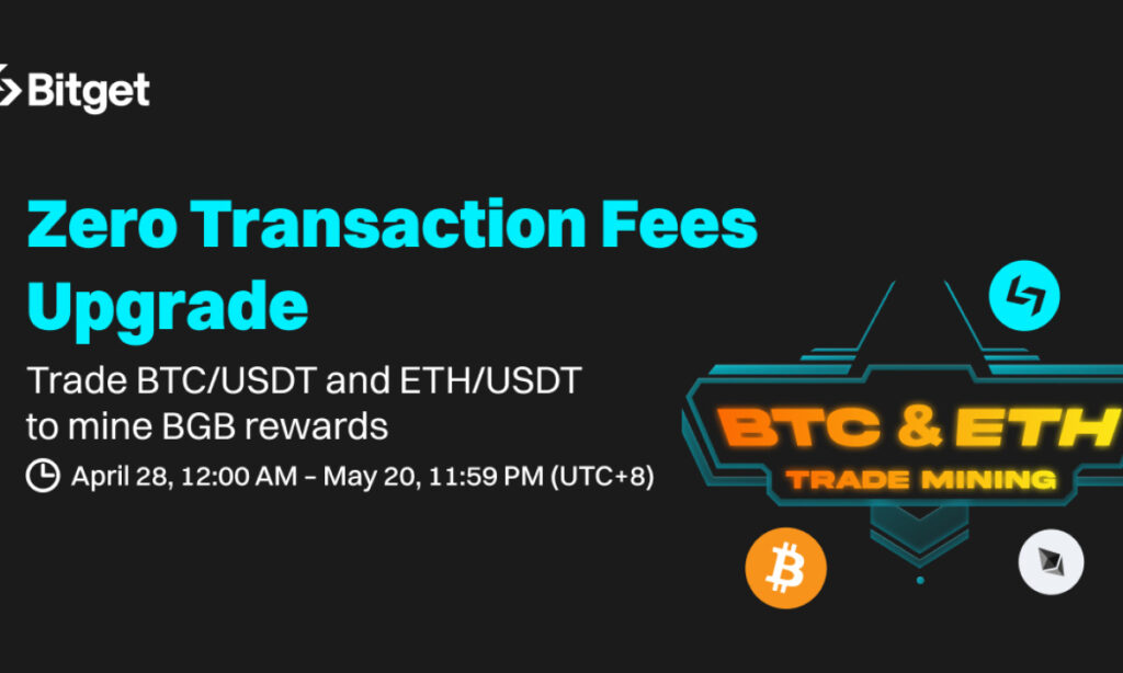 Bitget, the world’s leading cryptocurrency exchange and Web3 company, has announced to upgrade its Zero-Fee Campaign to Trade to Mine Promotion. This new initiative incentivizes users with Bitget Token (BGB) for trading BTC/USDT and ETH/USDT in the spot market. Daily transaction fees generated by these two pairs will be returned to traders in the form of BGB tokens, and the event will go live on 28th April and end on 20th May, 2024.
