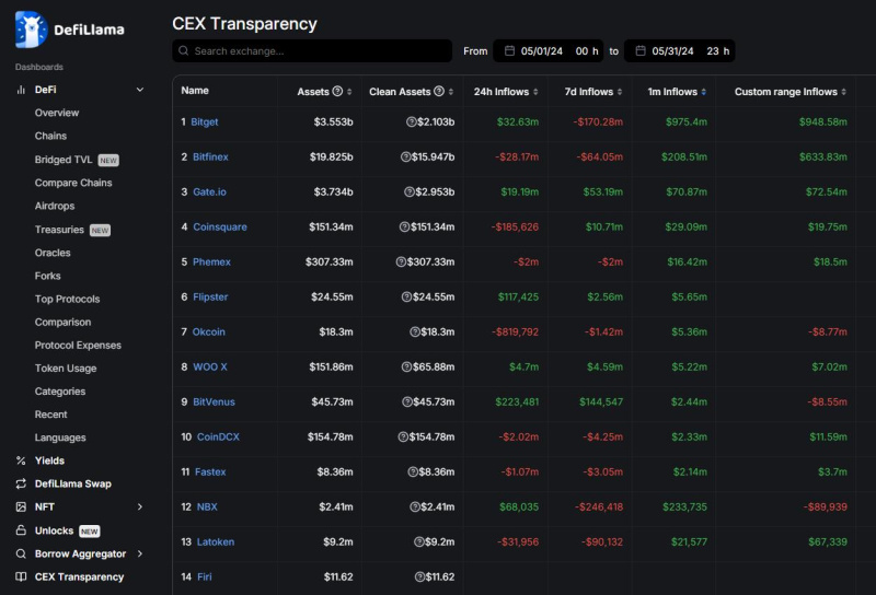 Concurrently, Bitget recorded the highest one-month inflows among all centralized exchanges in May, with $975.4 million in capital flowing into the platform according to on-chain data from DeFiLlama. This substantial influx of capital firmly establishes Bitget as an industry leader.