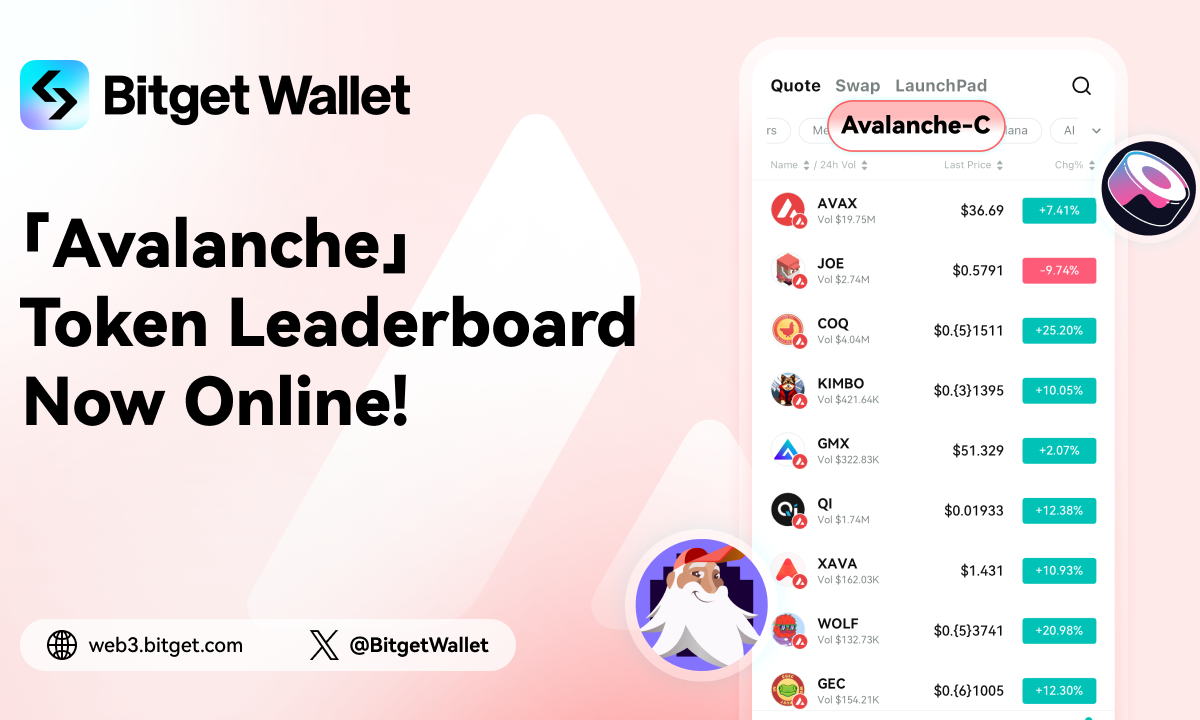 As a world-leading Web3 trading wallet, Bitget Wallet (formerly BitKeep Wallet) has recently added support for tokens on the Avalanche chain on Bitget Swap, the wallet’s integrated swap feature. Following this integration, users will be able to view real-time candlestick chart data as well as detailed on-chain transaction information on both their mobile and browser extension wallets. Users will be able to view important metrics such as transaction records, as well as capital and liquidity flow. Further, users can also view leaderboards for tokens on the Avalanche blockchain, gleaming comprehensive insights on the chain’s market performance.