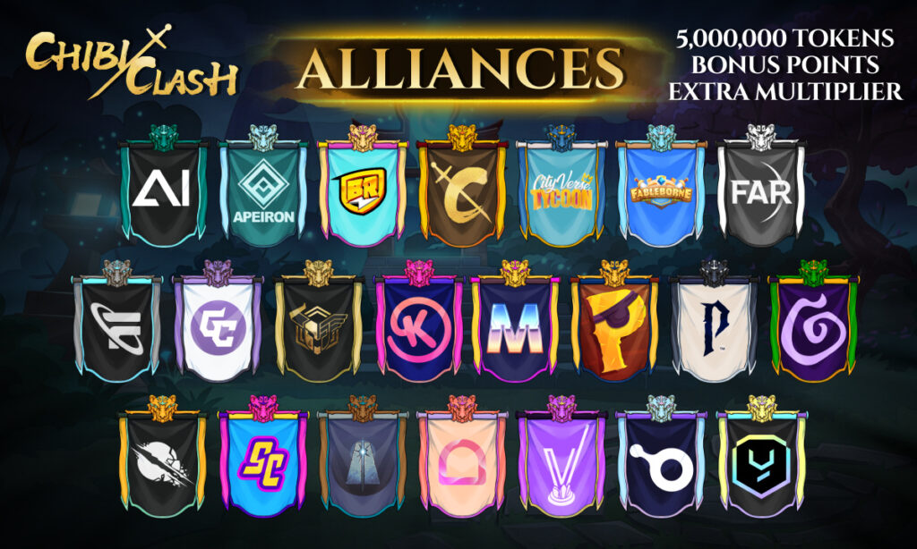 Chibi Clash, a fantasy web3 gaming universe, has unveiled its Kingdoms Alliance Event, running from July 2nd to July 22nd, allowing players to compete for rewards. This event marks a collaborative effort among 21 partner projects within the Chibi Clash ecosystem, including AI Arena, Apeiron, Pixelmon, Pirate Nation, Shrapnel, The Beacon, Xterio, Yield Guild Games (YGG).