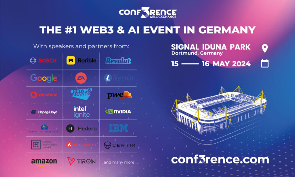 Scheduled for next week, May 15th and 16th at Signal Iduna Park in Dortmund, Germany’s largest stadium, CONF3RENCE aims to bridge the traditional economy with the burgeoning Web3 and AI sectors. The event is set to be a pivotal moment for the blockchain community, featuring 150+ speakers and hosting more than 100 partners & exhibitors from around the globe.