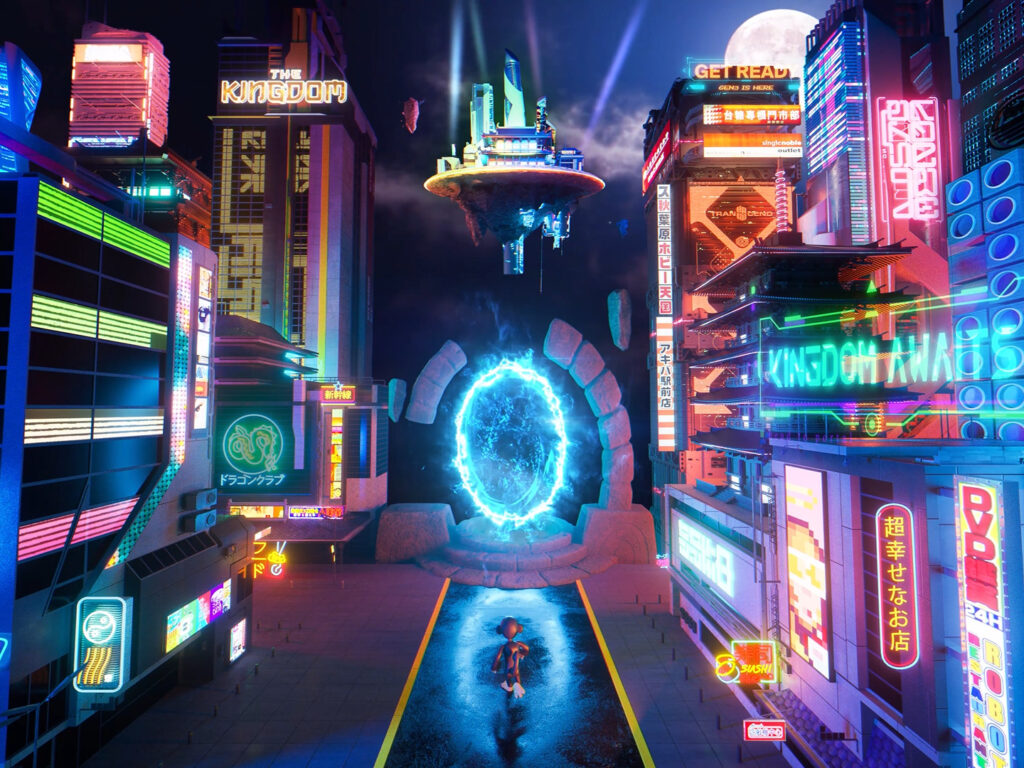 Users enter The Kingdom by having their avatars spawn in the Kingdom Capital. Travel occurs through transportation across futuristic cities with different themes, brand-built shops, user housing, public structures, and various digital experiences. Moreover, The Kingdom features land parcels for users to stake, enabling the construction of new structures and zones.