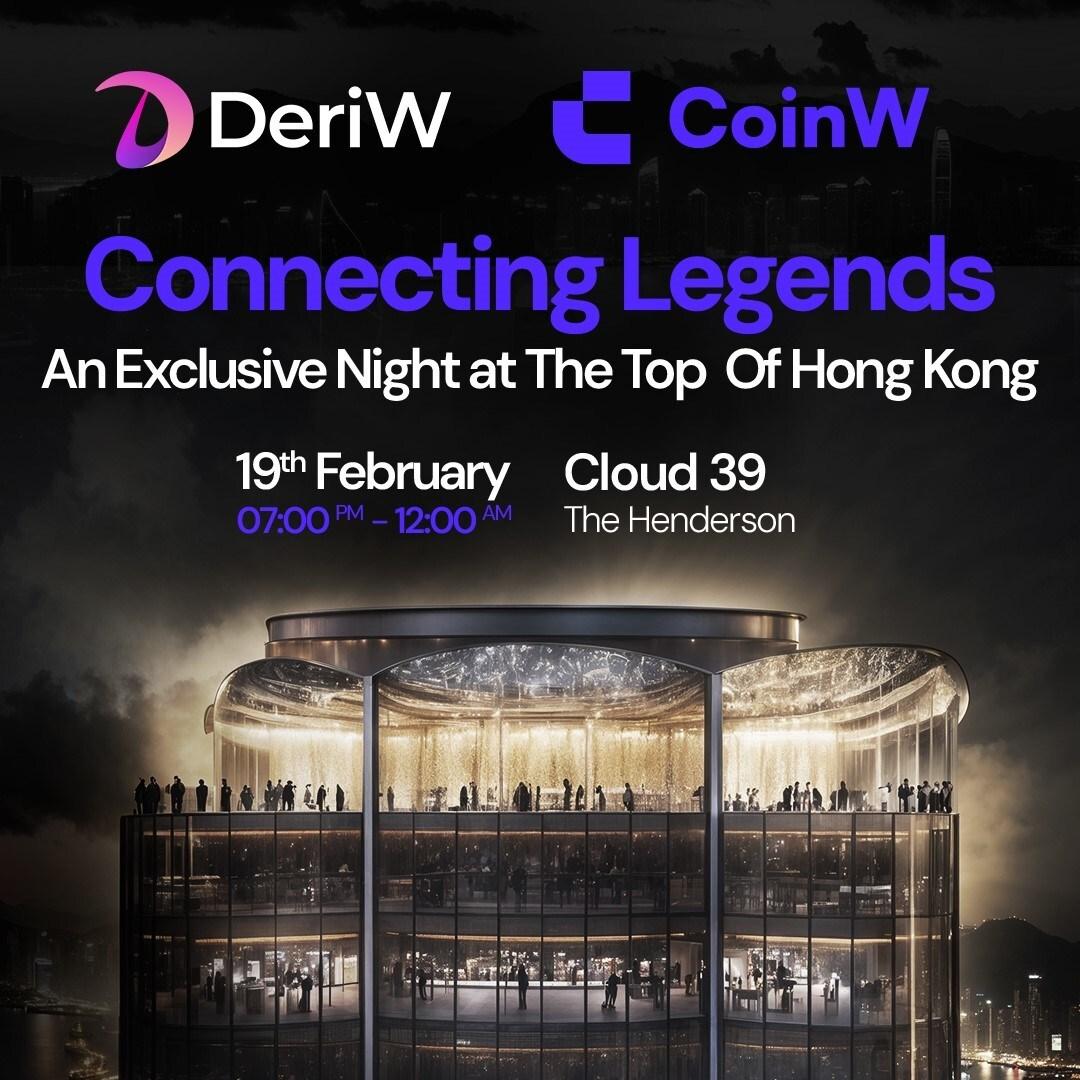 The official DeriW product launch will take place during CoinW’s ‘Connecting Legends’ After-Party on February 19 at Cloud 39 – The Henderson.
