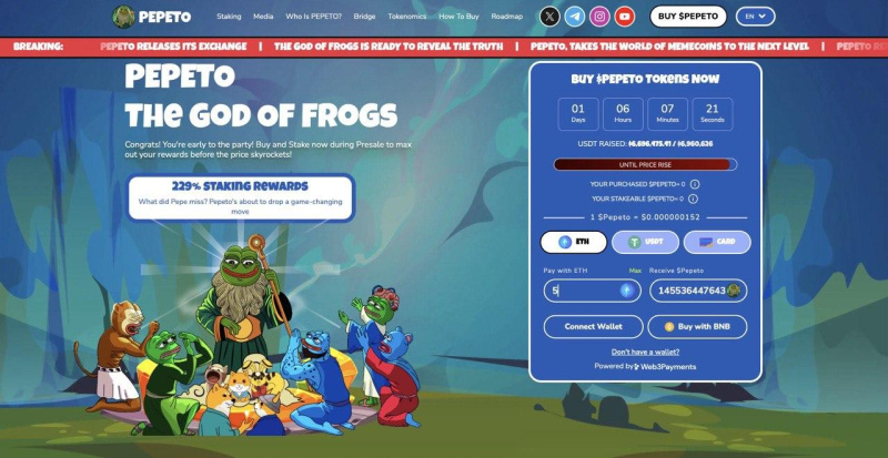 Ethereum Based Meme Coin Pepeto Presale Past $6.6 Million as Exchange Demo Launches