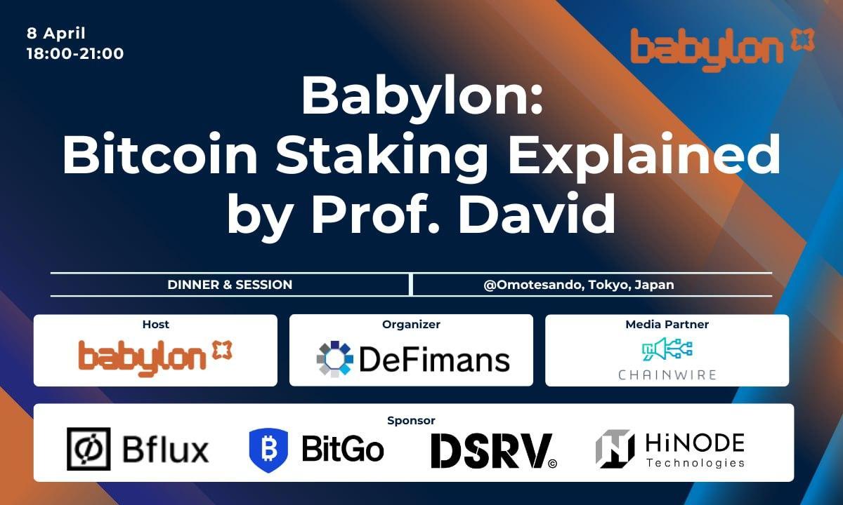 Unlocking the Potential of Bitcoin StakingBabylon Labs, the innovator behind the world’s first trustless, self-custodial Bitcoin staking protocol, hosted a private event on Monday, April 8, 2025, in collaboration with industry leaders BitGo, DSRV, and Hinode Technologies. DeFimans, a Tokyo-based web3 consulting firm, organized and produced the event.