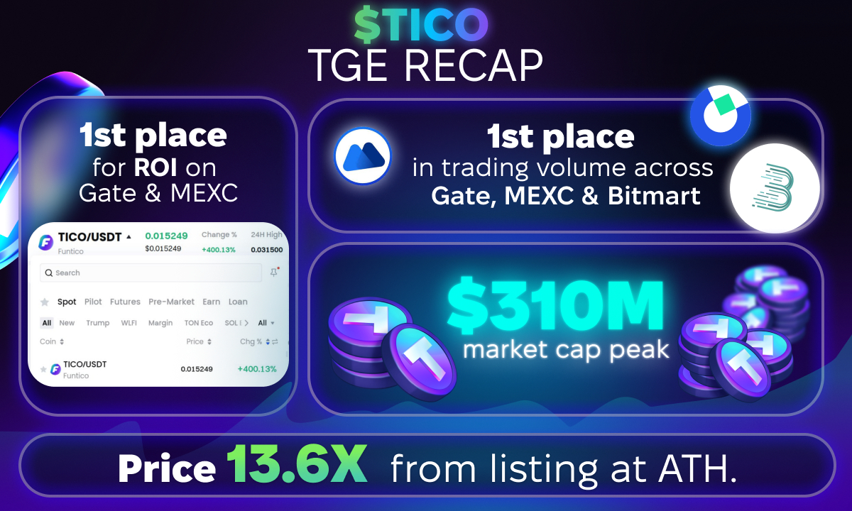 - $310M Market Cap Peak – Shortly after listing, $TICO reached an all-time high of $310 million in market capitalization, representing a 12x increase from its listing price.