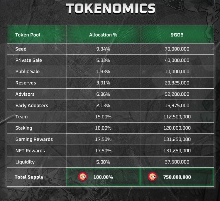 The play-to-earn rewards pool is the key driver of the game economy and so is assigned the largest distribution allocation of 262,500,000 tokens. The gaming rewards attract players to join the ecosystem and incentivize them to play an active role by playing the game, trading digital assets, and participating in various gaming activities that support the economy. Rewards from the pool will be distributed to the players through regular daily rewards, tournaments, special events, and missions. These rewards are based on an autonomous system where the GOB team has no control over the distribution of tokens.