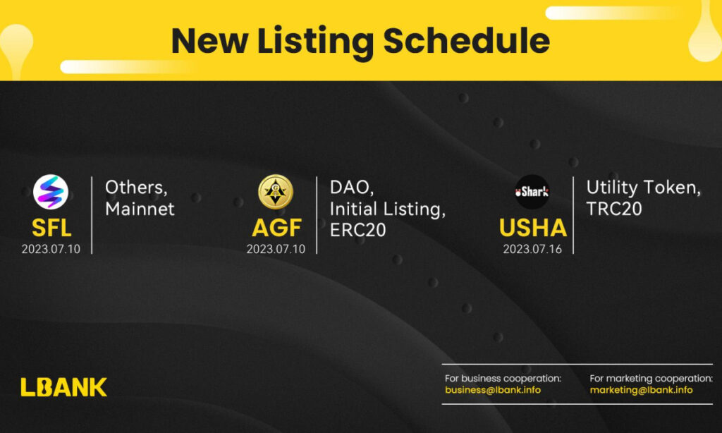 As a leading digital asset exchange, LBank is focused on providing its users with quality tokens to trade. This week it is listing three new assets: SFL, AGF, and USHA.
