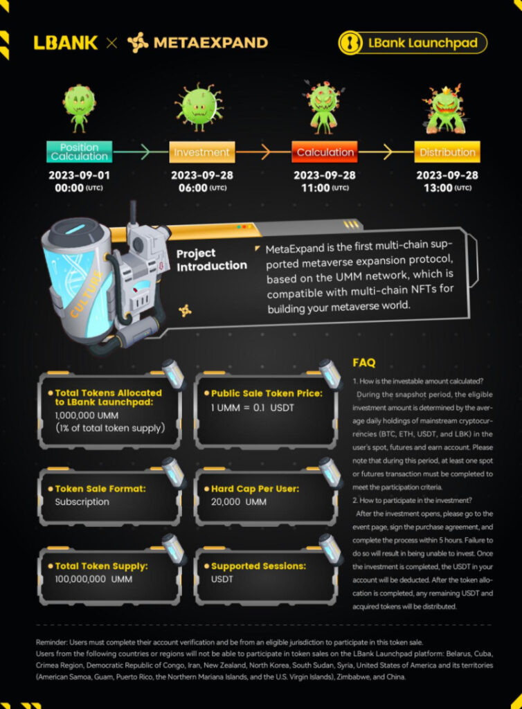 LBank is gearing up for its second Launchpad project, MetaExpand. The $UMM token will be distributed after the Launchpad ends on September 28 and it will then be listed on LBank on the 29th. MetaExpand follows the success of LBank’s debut Launchpad token, $PINS, which soared by 20x.