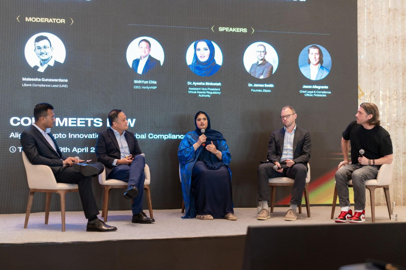 Speakers included Dr. Ayesha Binlootah, Assistant Vice President at Dubai Virtual Assets Regulatory Authority (VARA); Dr. James Smith, Founder of Elliptic; ShiYun Chia, CEO of VerifyVASP; and Jason Allegrante, Chief Legal & Compliance Officer at Fireblocks.
