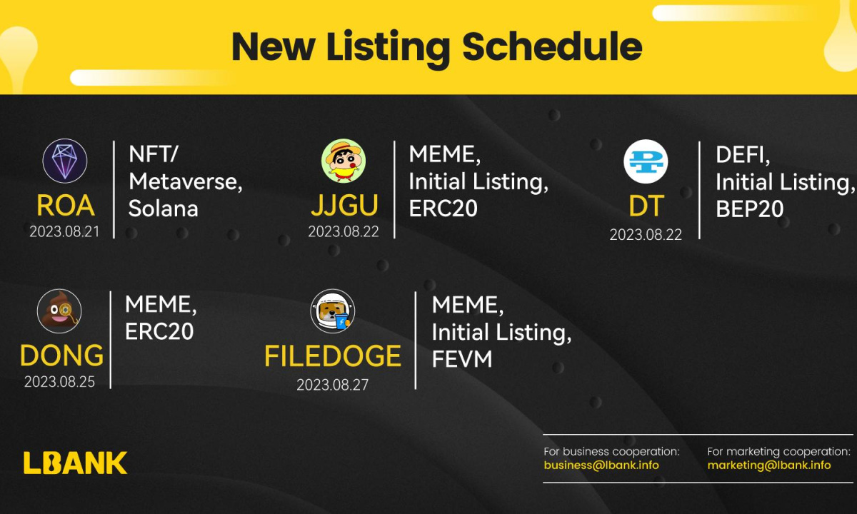 On August 21, LBank listed ROA, the token for metaverse and NFT project Roaland. The token is connected to facilitating NFT transactions and NFT-based service experiences. Roland also operates services based on the Art-Tech platform. On August 22, LBank listed JjangGu (JJGU), a meme-based cryptocurrency that is designed to serve as digital currency for charity, donations, good deeds, and similar altruistic causes.