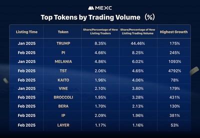 VICTORIA, Seychelles, March 13, 2025 /PRNewswire/ — MEXC, the leading global cryptocurrency exchange, has released token listing and trading data for January and February, highlighting strong market demand for new tokens, particularly memecoins, despite overall market volatility and downturn.
