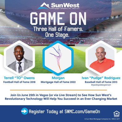 Football and baseball Hall of Fame icons Terrell ‘TO’ Owens and Ivan ‘Pudge’ Rodriguez today will induct leading mortgage originator Sun West’s recently developed empathetic technology product Morgan into the Mortgage Hall of Fame at Resorts World, Las Vegas.