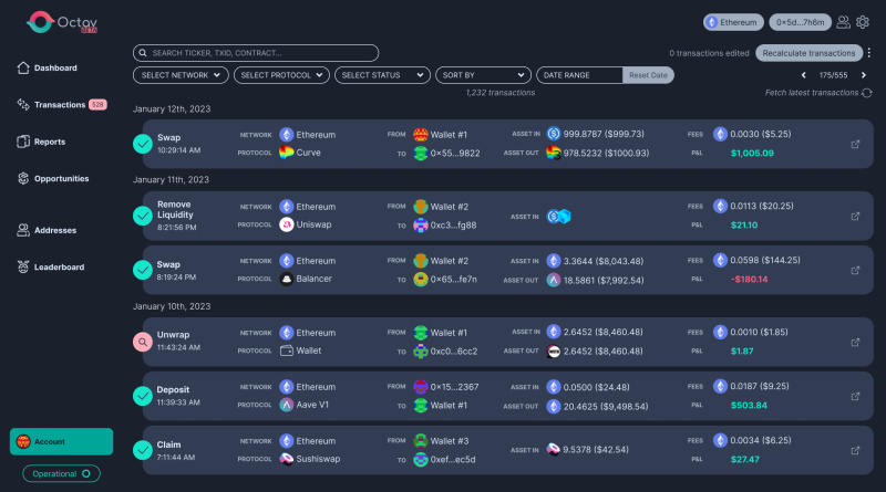 Octav is a free and editable data analytics platform that helps decipher Decentralized Finance (DeFi) investment activity. Octav’s user-curated database simplifies DeFi for traders, tax professionals, and liquid asset management firms, serving as a pre-tax facilitator for cost-basis, profit & loss, and more.