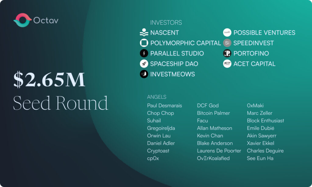 Octav is led by Mathieu Baril & Luc Blackburn, both of whom have previously worked at companies like Zapper, Accedian Network and Otodata before starting Octav. Octav boasts a variety of esteemed Investors including Nascent, Polymorphic Capital, Parallel Studio, Spaceship DAO, Investmeows, Possible Ventures, Speedinvest, ACET capital, Paul Desmarais, CEO of Sagard holdings, and Mark Zeller from AAVE.