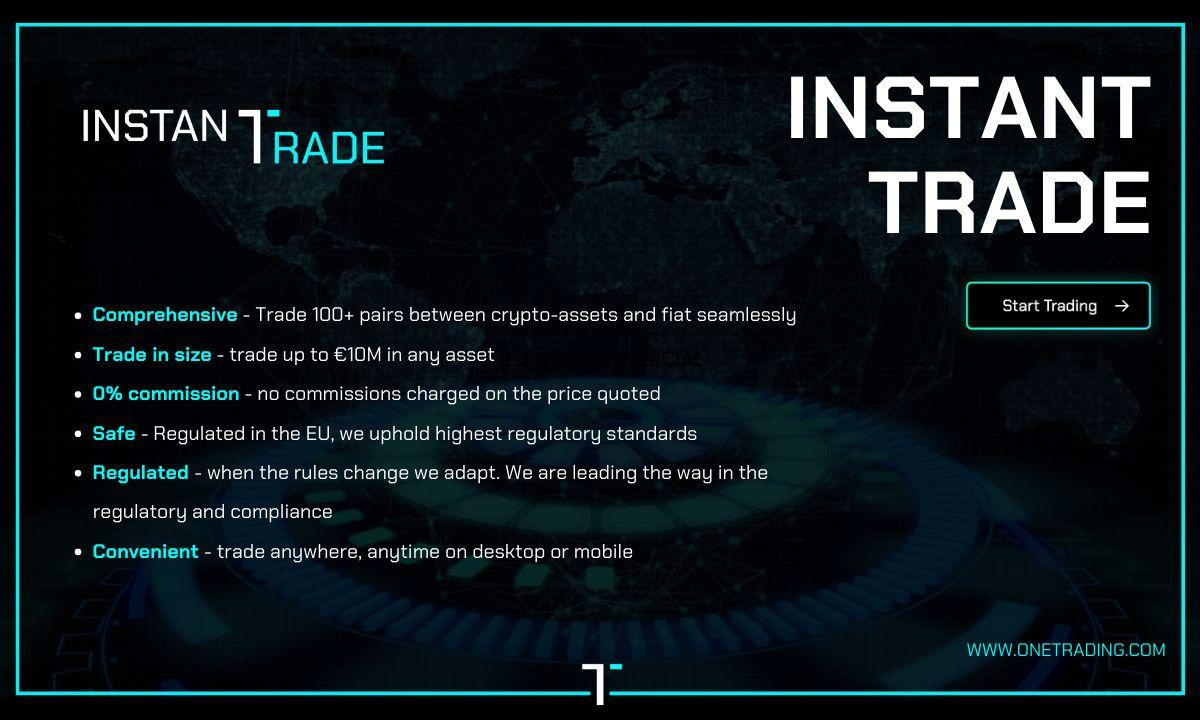 One Trading, the crypto asset exchange formerly operating under the Bitpanda Pro brand, today announced its new product, Instant Trade.