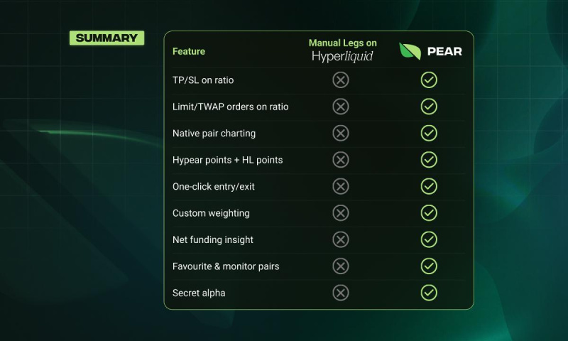 Pear makes advanced strategies simple, mobile-friendly, and capital-efficient – whether you’re trading HYPE/SOL or building custom ETH/BTC trades with beta-weighted logic.