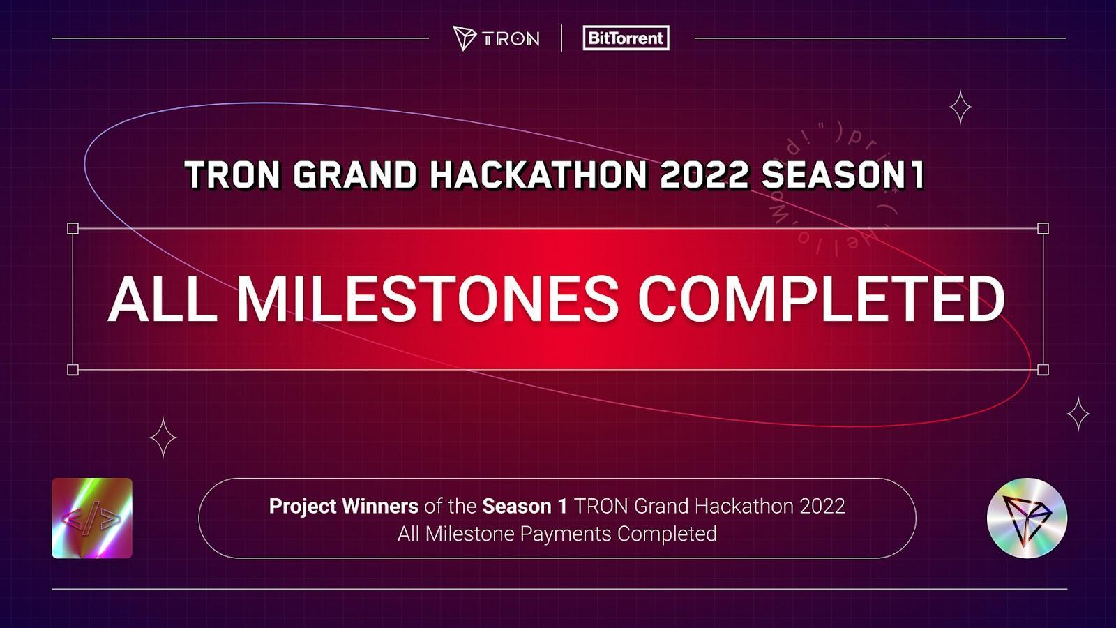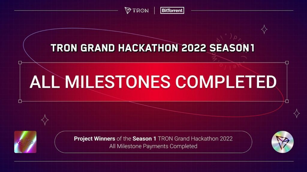 TRON DAO and BitTorrent Chain (BTTC) have announced the final portion of the milestone payments of the TRON Grand Hackathon 2022 Season 1 project winners have been completed.