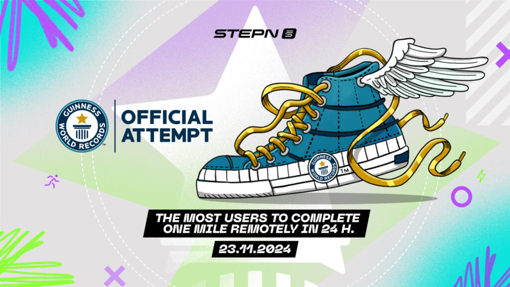 FSL is thrilled to announce an exciting new event to break a GUINNESS WORLD RECORDS(™) title as STEPN and STEPN GO attempt for most users to complete a remote one mile distance in 24 hours! This record-setting event will occur on November 23, 2024, running from 12:00 AM to 11:59 PM UTC, inviting users from around the world to come together in a show of global unity, connectivity, and collective achievement.