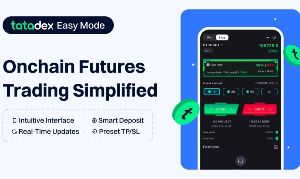 tatadex, an intuitive onchain futures trading platform designed for beginners, has officially launched Easy Mode, a simplified feature tailored to help newcomers navigate the world of onchain futures trading. To mark the launch, tatadex is hosting an Early Access Campaign, offering prizes to reward early participants.