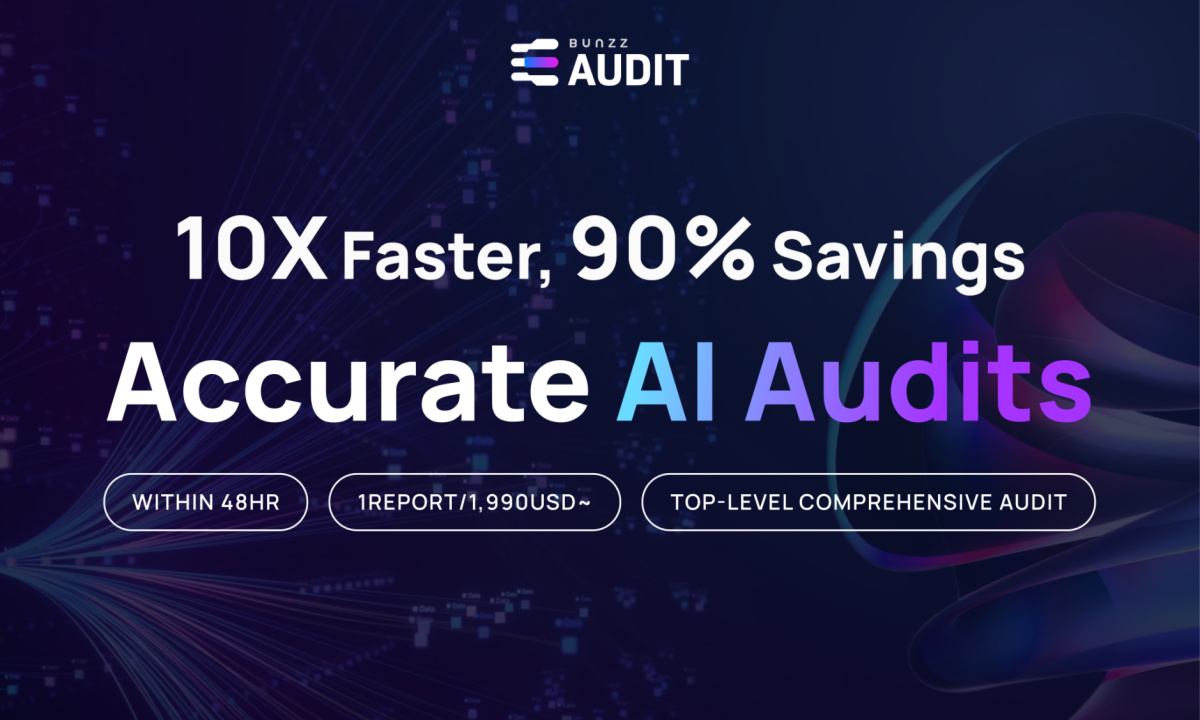 Bunzz, a Singapore-based web3×AI tech startup launches “Bunzz Audit,” an AI-driven smart contract auditing service offering fast, cost-effective audits with actionable insights for security improvements, scanning contracts from over 100 perspectives using AI and an extensive database.