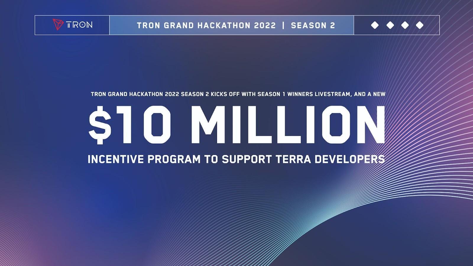 TRON Grand Hackathon 2022 Season 2 Kicks Off With Season 1 Winners Livestream and a New $10 Million Incentive Program to Support Terra Developers