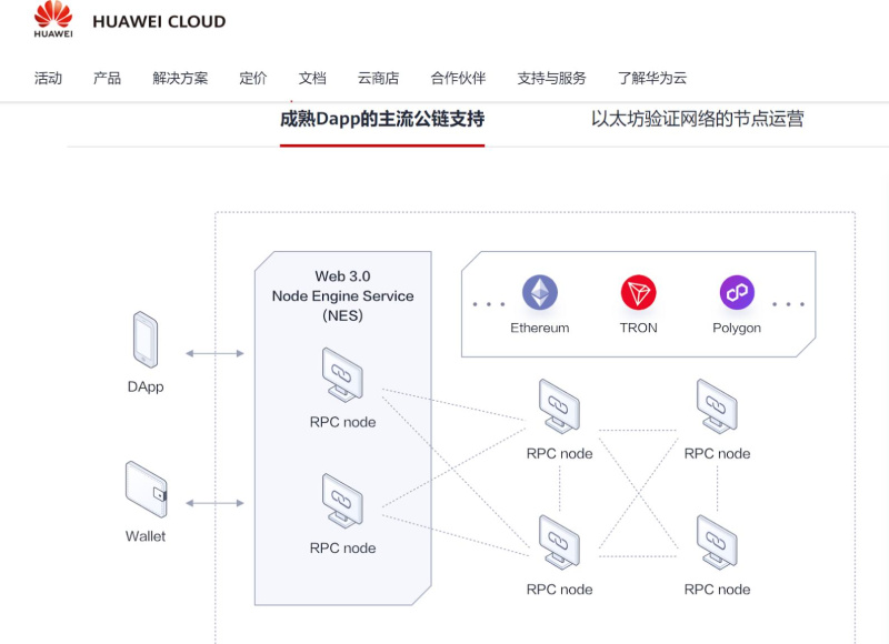 According to Huawei, Web 3.0 NES is a node engine platform developed by Huawei Cloud, which connects developers to mainstream blockchains, including TRON and Ethereum. It helps users streamline the management of blockchain networks, resources, and verification, whilst offering Web3 services featuring higher stability, efficiency, and security.