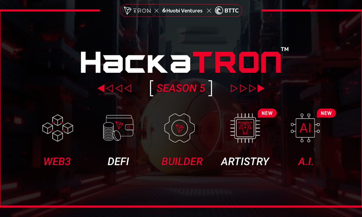 TRON DAO, BitTorrent Chain (BTTC), and Huobi Ventures proudly present HackaTRON Season 5 (S5), an incredible showcase of talent in the fast-paced world of blockchain technology. In tandem with the much-anticipated TRON Builder Tour, we invite innovative minds to take part in this year’s event, powered by an exceptional prize pool of up to 500,000*. It’s time to set the stage for the next big thing in the blockchain universe!