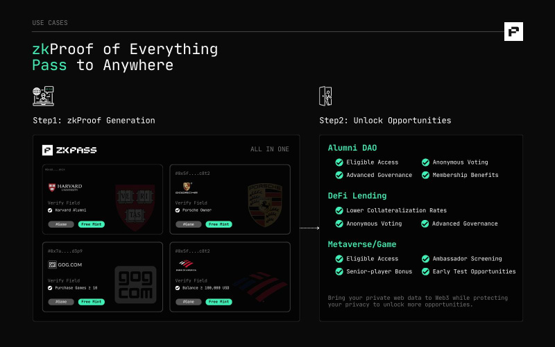zkPass can be applied in various scenarios to enhance user experience, trust, and privacy: