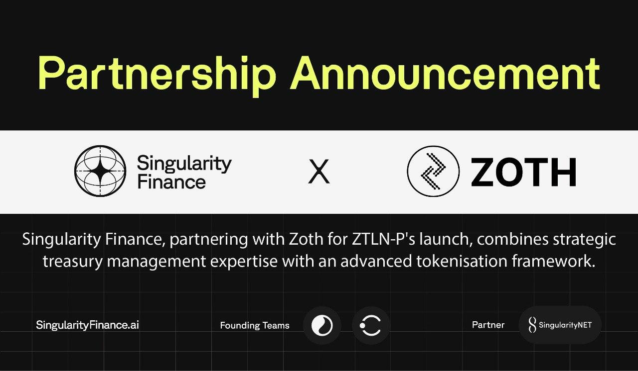 Singularity Finance (SFI), partnering with Zoth for ZTLN-P’s launch, combines strategic treasury management expertise with an advanced tokenization framework. It optimizes DeFi yields while ensuring safety and liquidity, and its framework enables compliant tokenized funds for blockchain transition of real-world and AI-related assets. This comprehensive solution addresses key tokenization challenges through a robust legal structure, reputable service providers, and liquidity pools for token redemption. Together with Zoth’s expertise in GTM strategies for bringing tokenized traditional financial instruments on-chain, this collaboration offers asset managers and institutional investors a streamlined solution to efficiently manage their organization’s treasury while generating consistent returns.