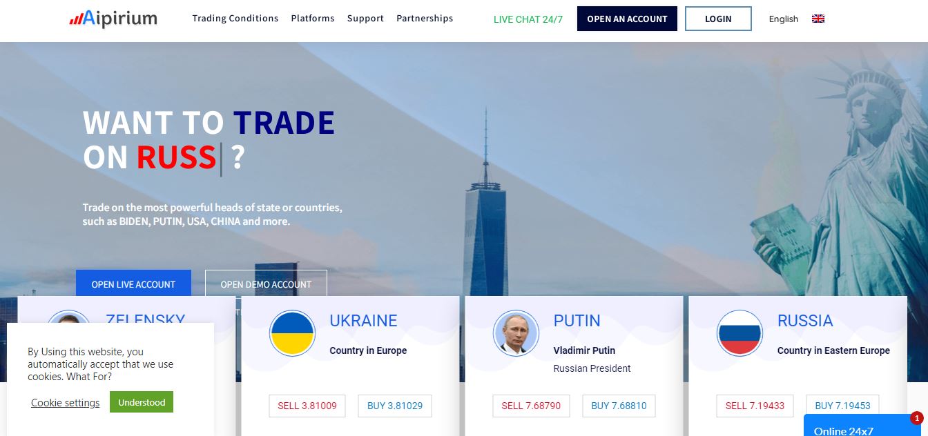 The clearest sign that this broker is a massive scam is the fact that it doesn’t offer any trading instruments for trading! There are no foreign currencies, stocks, indices and so on. What you get instead are world leader and country ratings! You can trade on Merkle, Macron, Putin, Russia, China, Biden, UK, Johnson, etc. This type of trading is unheard of!