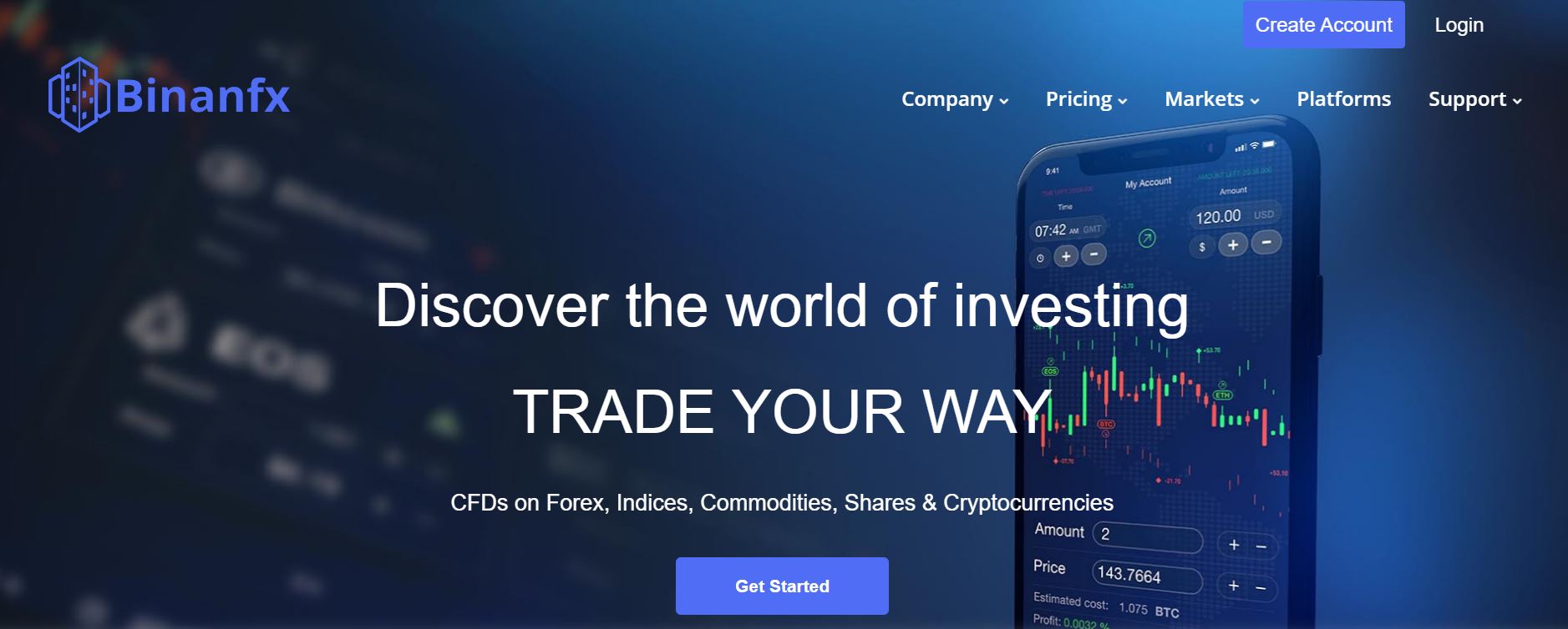 Binanfx provides hardly any information about their trading accounts and trading conditions.