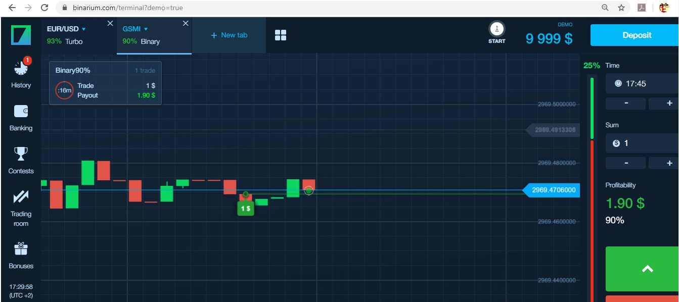 Binarium allows you to start trading with a minimum deposit of just $5, which is actually one of the lowest amounts in the industry. The minimum bet size of $1 is also one of the least in the market. This is a big plus, as it means that you can manage risk much better.