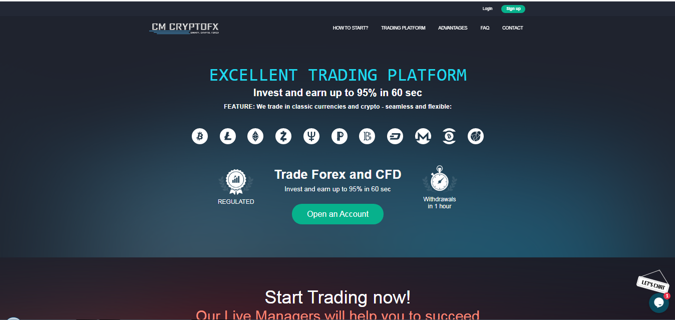 We also tried opening a live account with CM CryptoFX, but the registration failed. The icon for the platform does not function. When you click on it, you get redirected to the website’s account page.