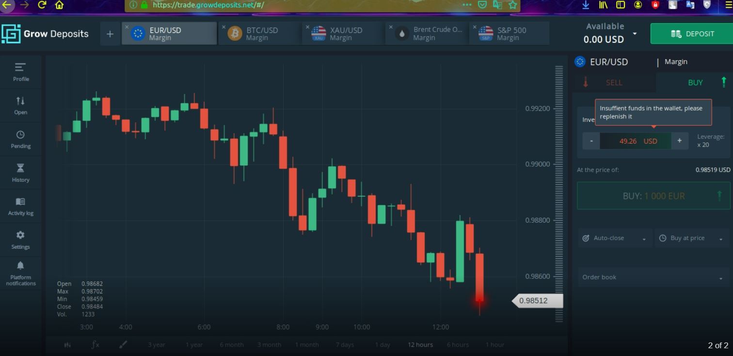 As we mentioned earlier, GrowDeposits has not been transparent about they trading accounts or trading conditions. We do not know what the minimum deposit is; we did find out that you can deposit as little as $1 to start an account with this broker. But they themselves have not specified what their minimum deposit requirement is.