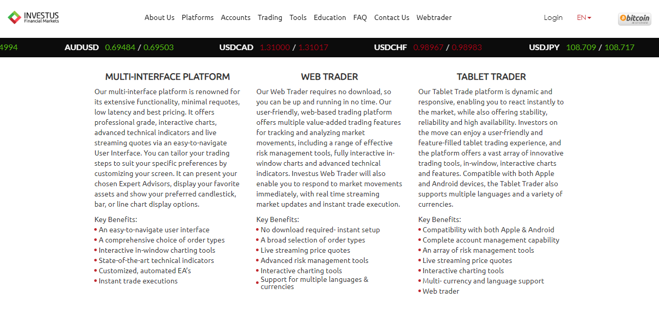 The broker seems to offer various trading platforms: The Multi-Interface Platform, the Web Trader and the Tablet Trader. However, when you actually read the details, there is not much difference between them.