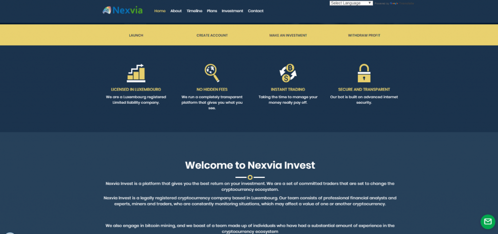 There is next to no corporate information on Nexvia Invest’s website. We don’t know the name of the company that owns and operates this brokerage. The only piece of information that has been supplied is an address in Luxembourg.