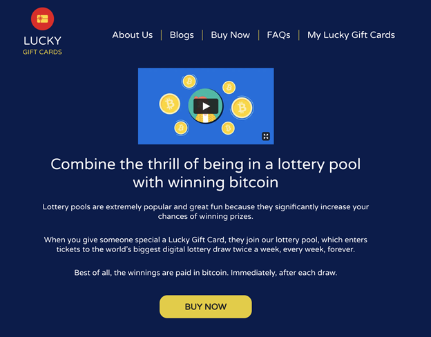 However, the primary function of Lucky Gift Cards is to expand the adoption of bitcoin, also serving as an acquisition tool and channel for the sister Crypto Millions Lotto website, which is a more established website.